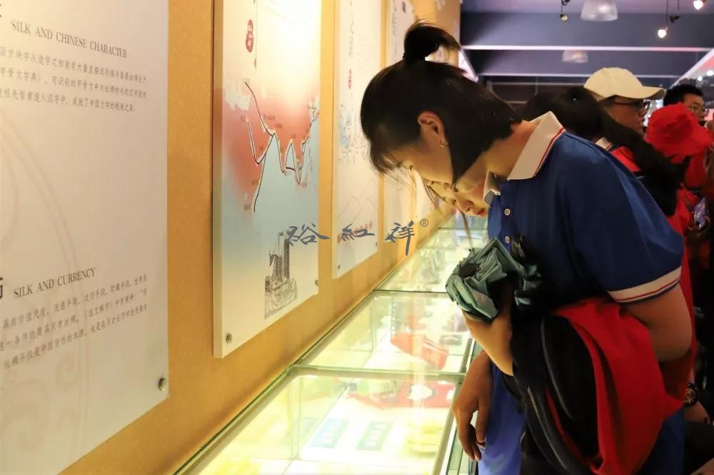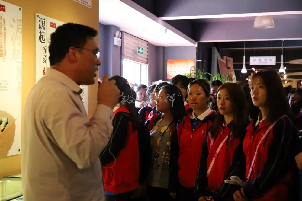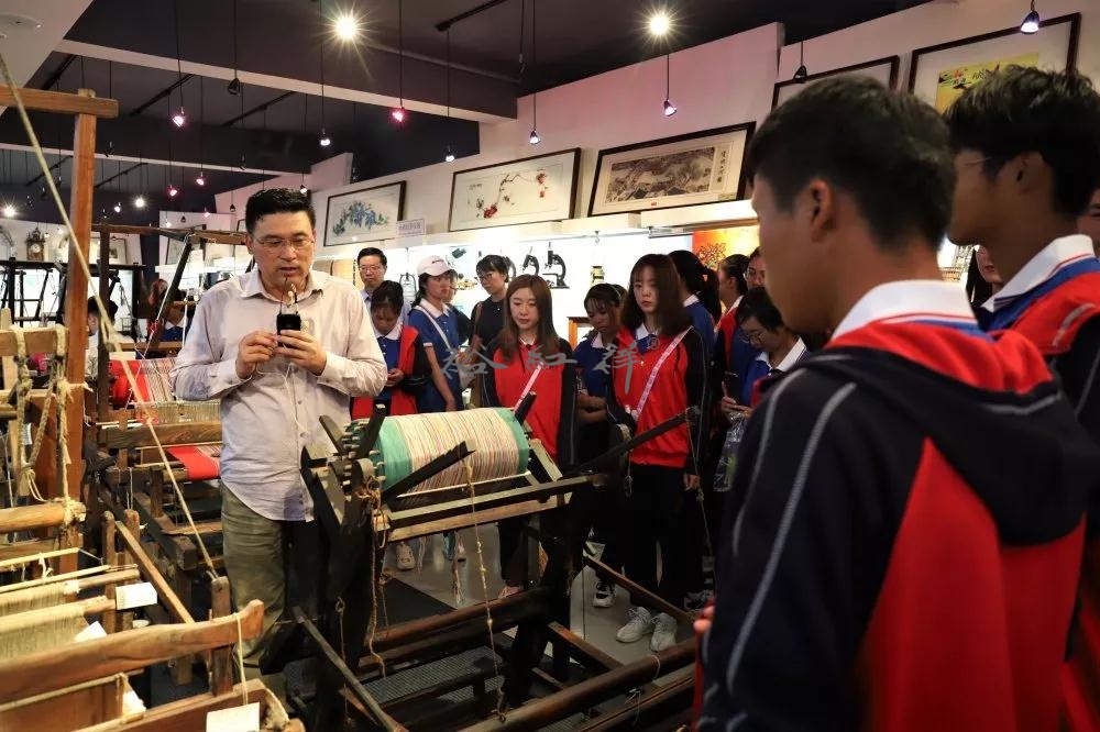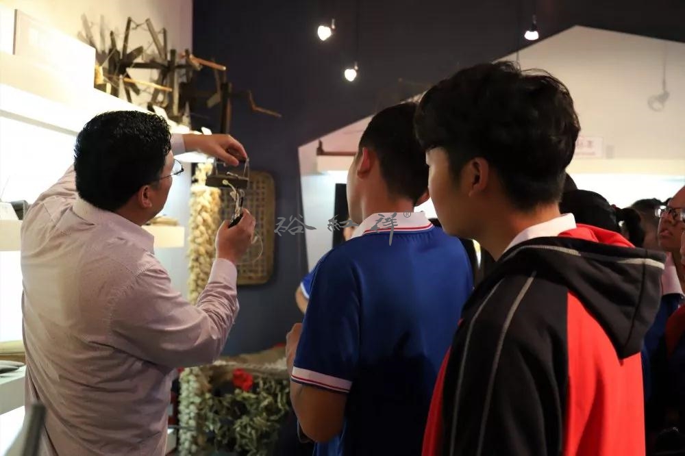 毕旭东馆长带领同学们参观了丝绸文化馆,详细讲述了丝绸文化的历史,并展示了各年代生产丝绸的不同工艺。同学们兴趣十足,听得津津有味。看着琳琅满目的展品,大家纷纷拍照留念。
