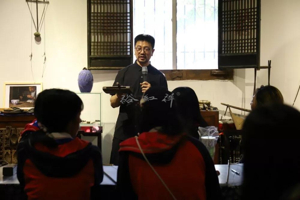 离开裕红祥丝绸文化馆后,艺术学院一行人又来到传统锔艺大师耿海胜的工作室—吉呈轩锔工坊参观学习。