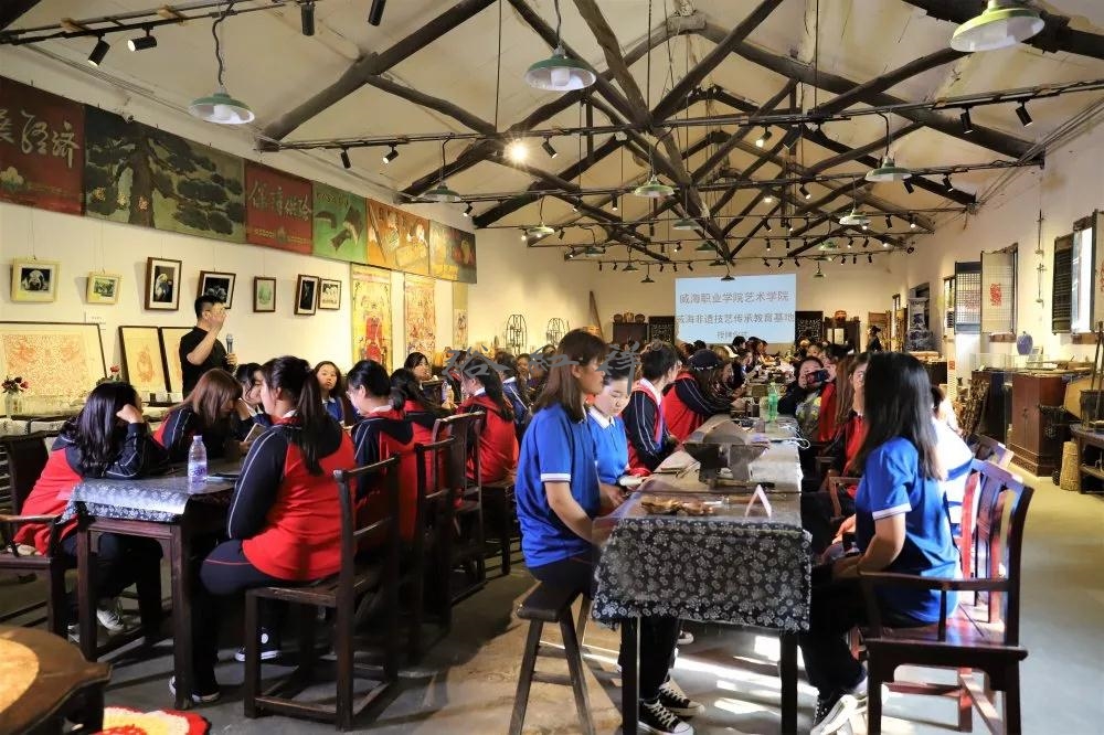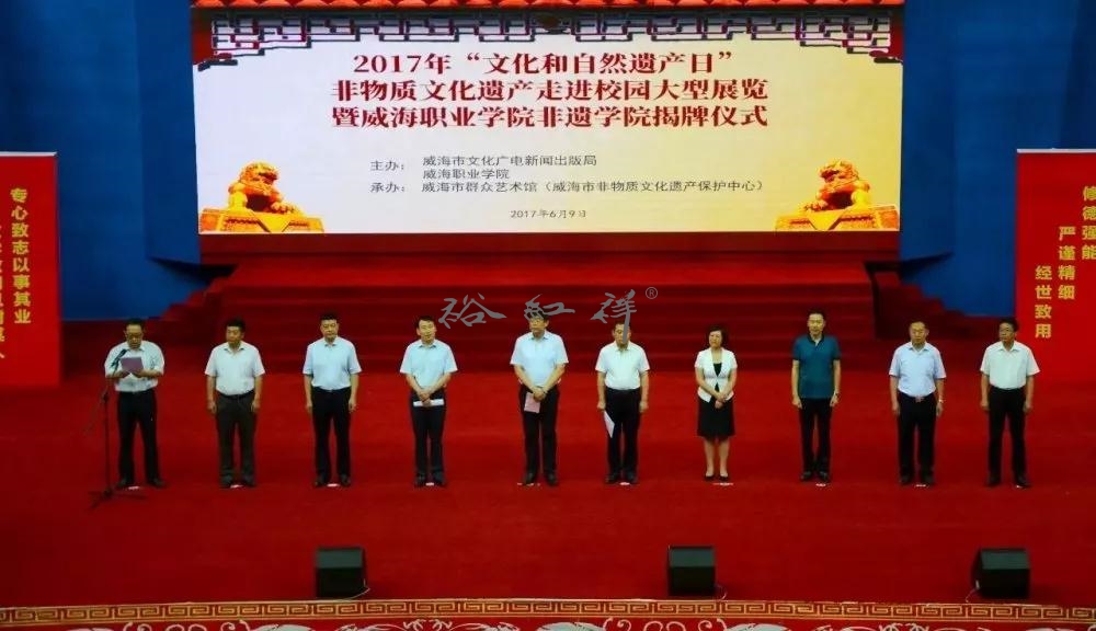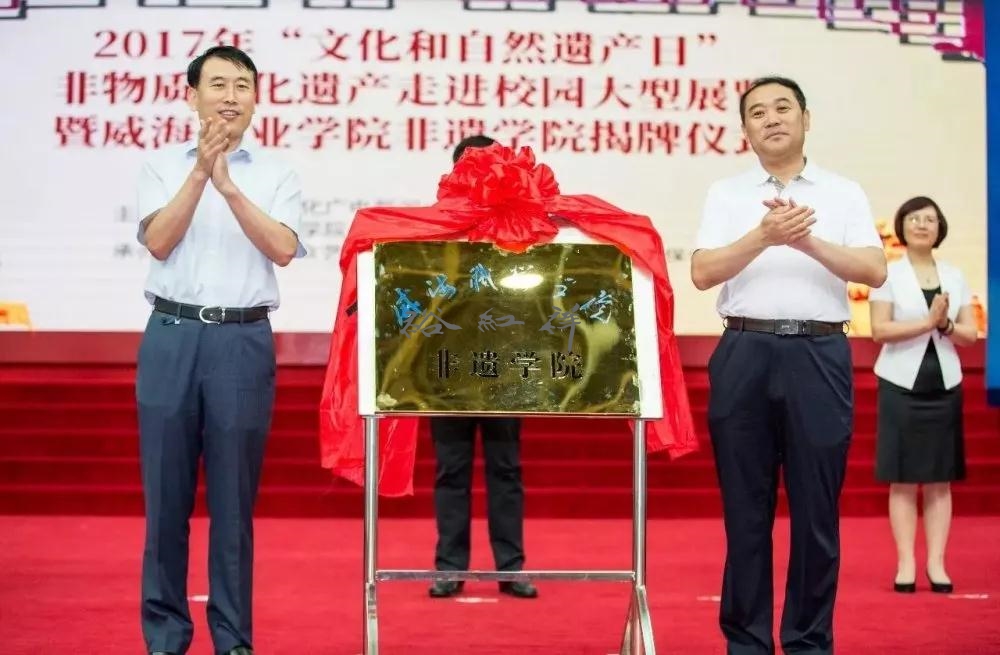 2017年6月9日,“文化和自然遗产日”非物质文化遗产走进校园大型展览暨威海职业学院非遗学院揭牌仪式在威海职业学院隆重举行。活动由威海市文化广电新闻出版局、威海职业学院主办,威海市群众艺术馆(威海市非物质文化遗产保护中心)承办。