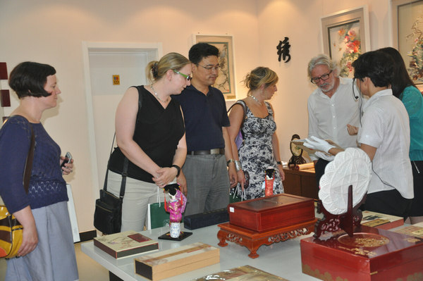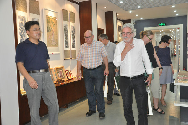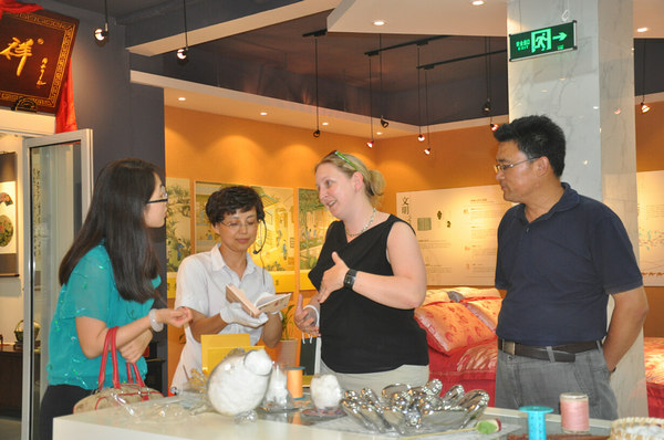 7月9日上午,特蒙市长一行10人在市领导的陪同下到威海裕红祥丝绸文化馆参观并购物。