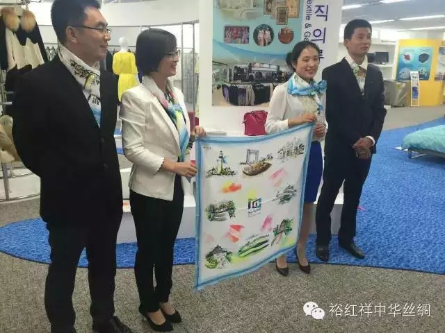 巡馆过程中,市环翠区旅游局的工作人员将来自环翠区的礼物——环翠旅游手绘丝巾献给了各位参观嘉宾。郭树清省长对这份特殊礼物赞不绝口,并表示山东省也可以绘制这样一条手绘丝巾。